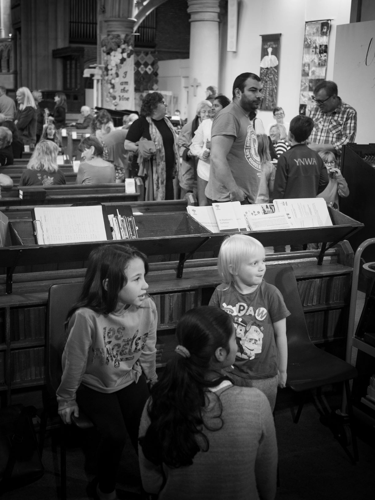 Children and Young People (CYP) leave for their groups about 10-15 minutes in, after the ever-popular Action Song! They return at the end of the service to show us what they have been doing and thinking and so we all share in the final blessing,